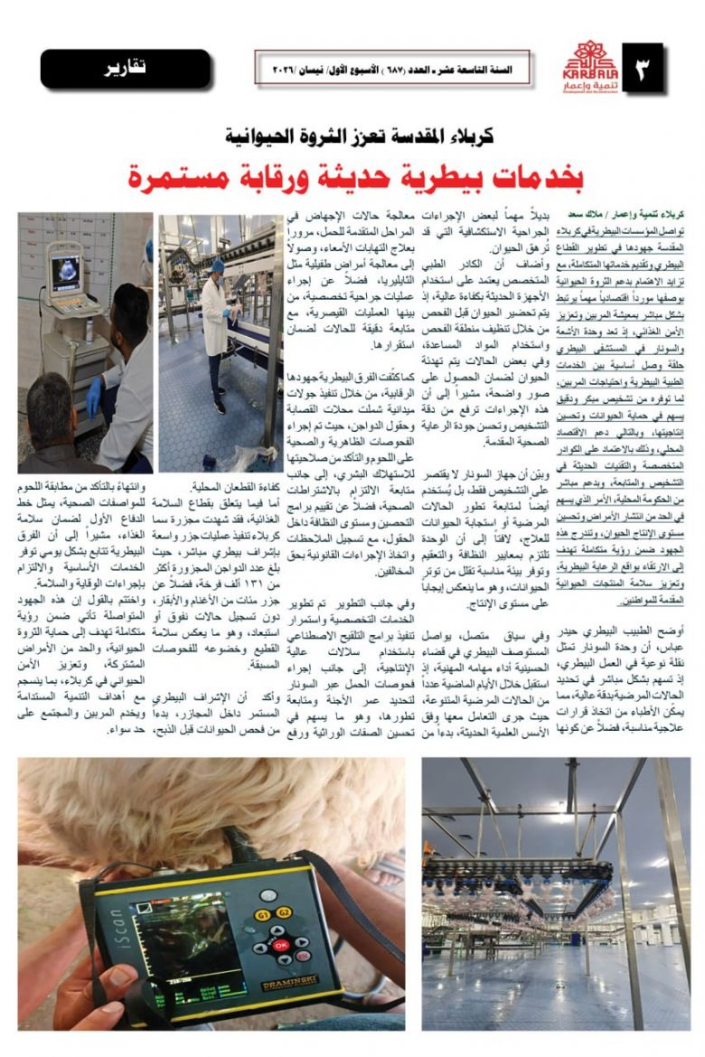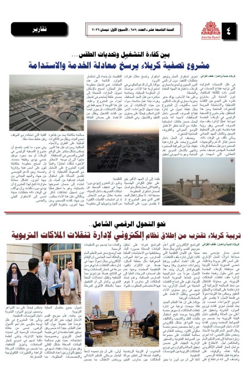 تصفح صحيفة كربلاء تنمية واعمار ذي العدد 686