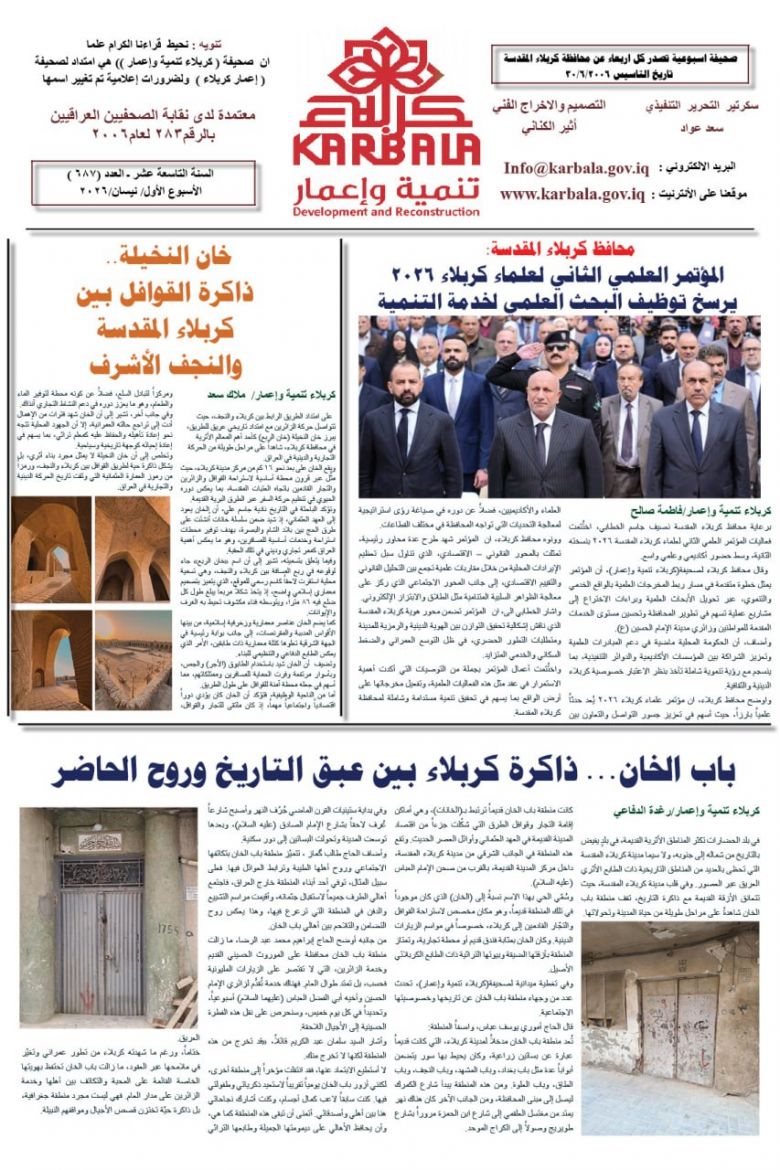 تصفح صحيفة كربلاء تنمية واعمار ذي العدد (٦٨٧)