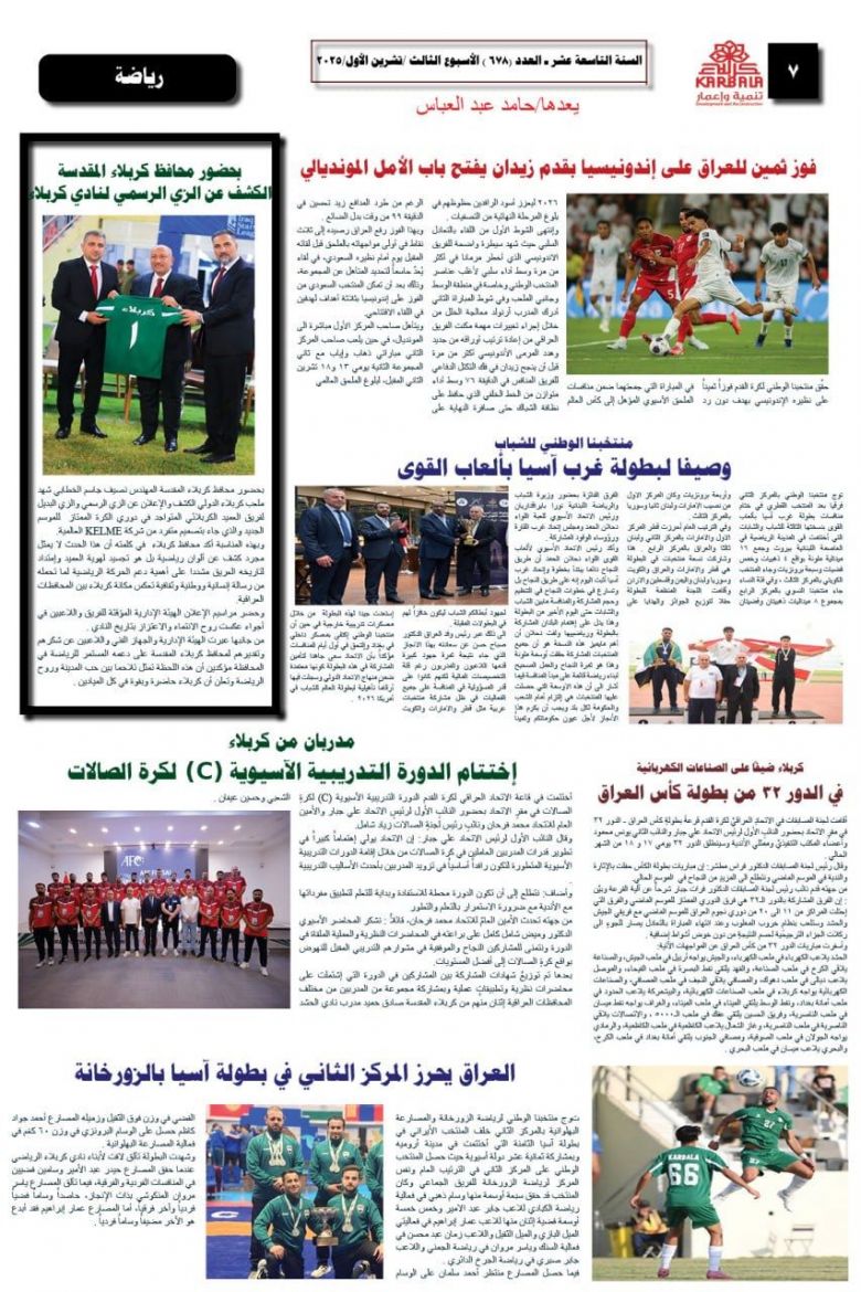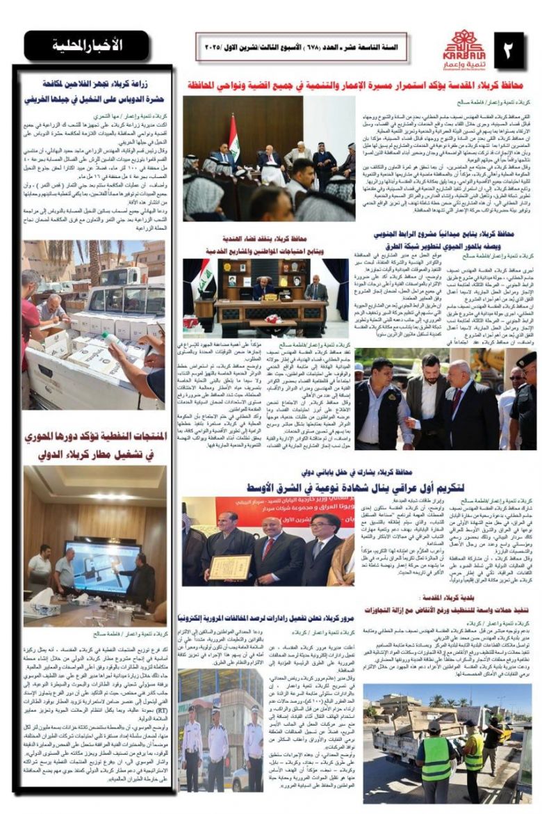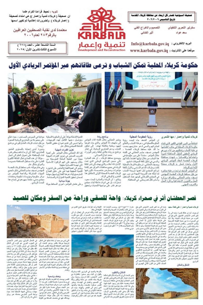 تصفح صحيفة كربلاء تنمية واعمار ذي العدد 678