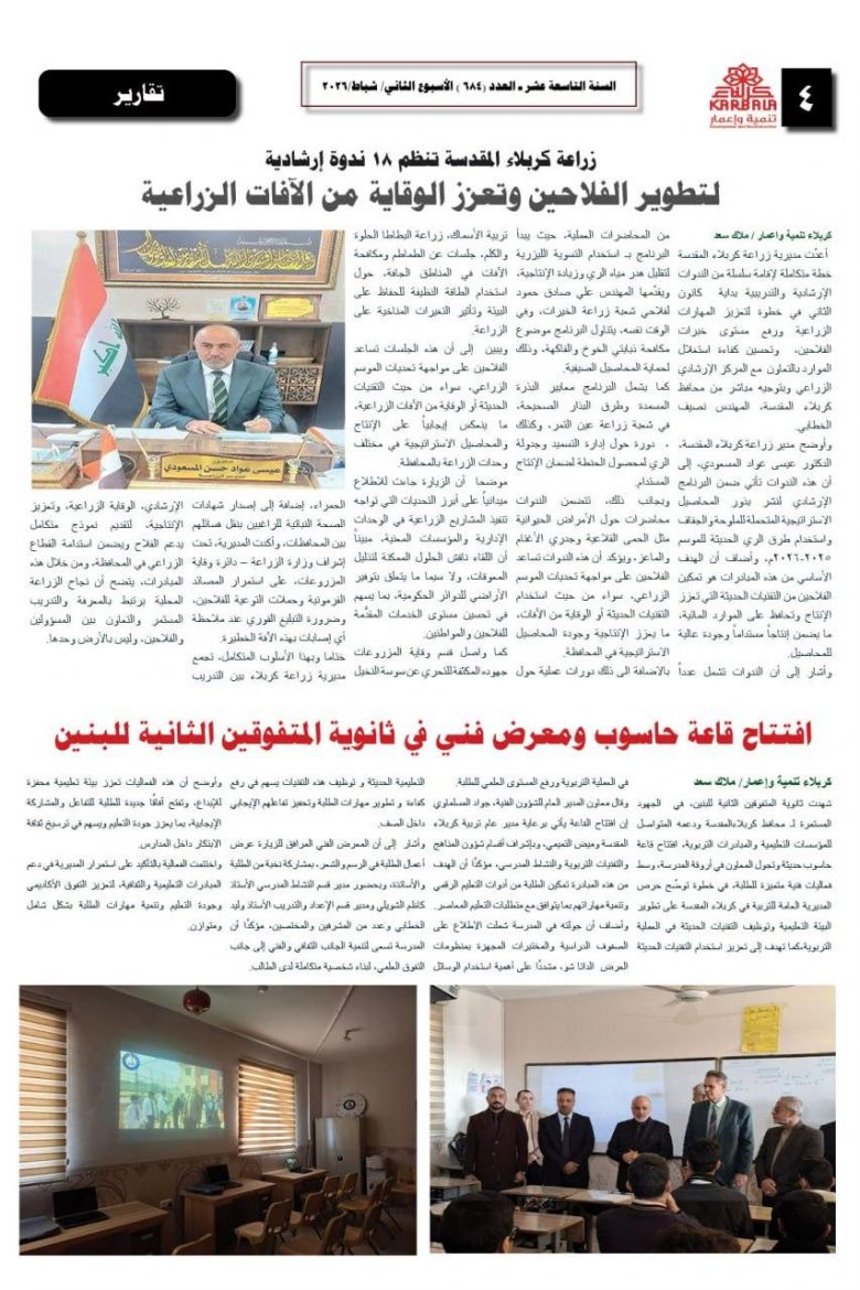 تصفح صحيفة كربلاء تنمية واعمار ذي العدد 680