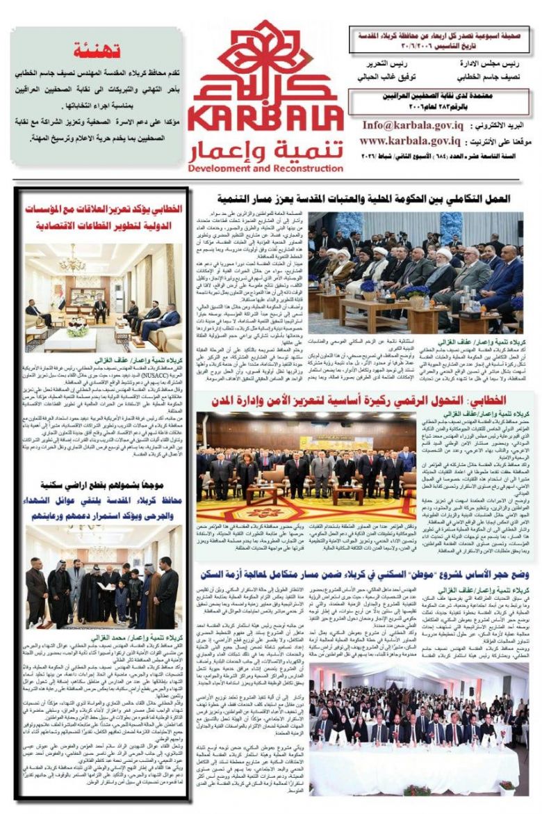 تصفح صحيفة كربلاء تنمية واعمار ذي العدد 682
