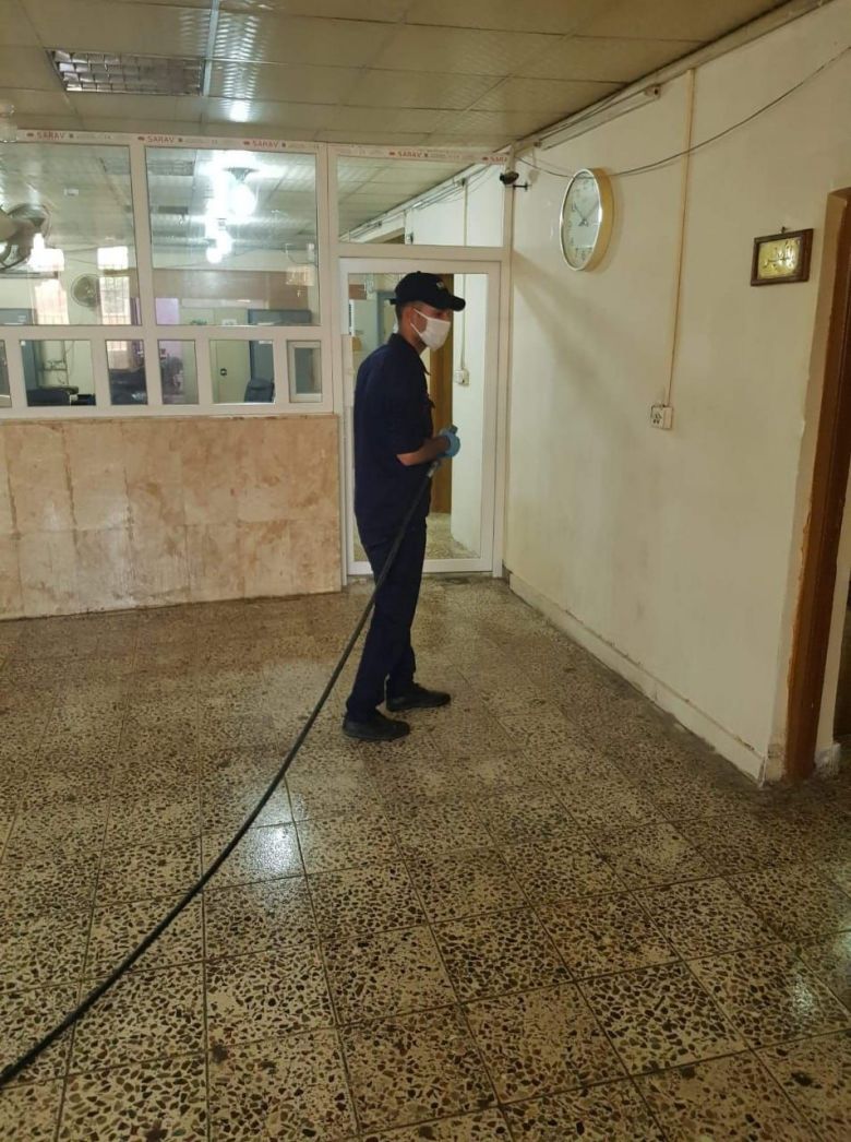 بأشراف وتوجيه مباشر من مدير الدفاع المدني في المحافظة العميد الحقوقي طاهر حميد محسن الذي قال لـ(موقع كربلاء الإخباري) "يستكمل فريق CBRN بأمرة الرائد عماد نزار وفريق الاستجابة السريعة ومركز دفاع مدني رتل الطوارئ ومركز دفاع مدني كربلاء حملة تعقيم وتعفير شملت عدد من دور المصابين والدور المجاورة لها في عدة مناطق وكذلك تعقيم عدد من الدوائر الحكومية داخل مركز المحافظة". َ