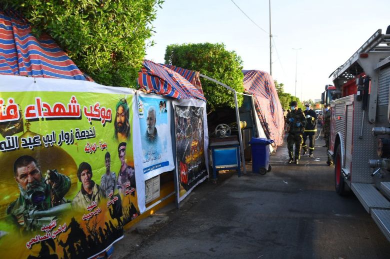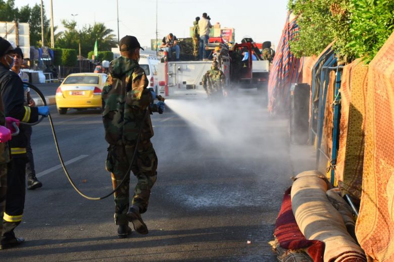 قامت فرق الدفاع المدني في محافظة كربلاء المقدسة بحملات تعفير كبرى للمواكب الحسينية المشاركة في زيارة الأربعين للحد من إنتشار فيروس كورونا بين صفوف الزائرين.