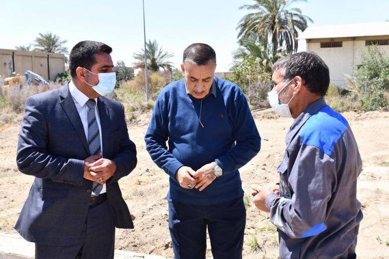 وقد التقى بمسؤول المشروع المهندس جواد كاظم مدفون والمهندس المقيم ضياء ناجي الوزير ومسؤول الهندية المهندس باسم عيسى وكادر المشروع الهندسي .