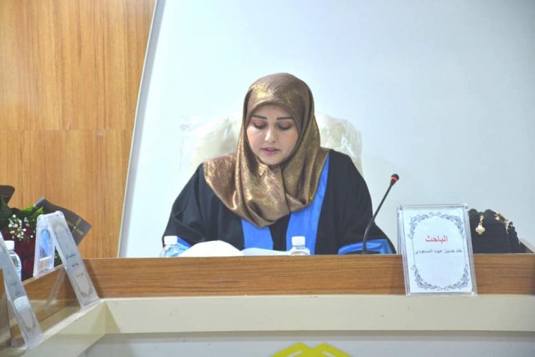 تألفت لجنة المناقشة من (أ.د عبد الامير مطر فيلي / جامعة كربلاء – كلية التربية للعلوم الانسانية / رئيساً و أ.م.د رفل حسن طه / جامعة كربلاء – كلية التربية للعلوم الانسانية / عضواَ و أ.م.د اماني حارث مالك / جامعة القادسية – كلية التربية للبنات / عضواَ و أ.د احمد صبيح محيسن الكعبي / جامعة العميد – كلية الصيدلة / عضوا ومشرفاَ (.وقد اجيزت الدراسة بتقدير (جيد جدأ(.