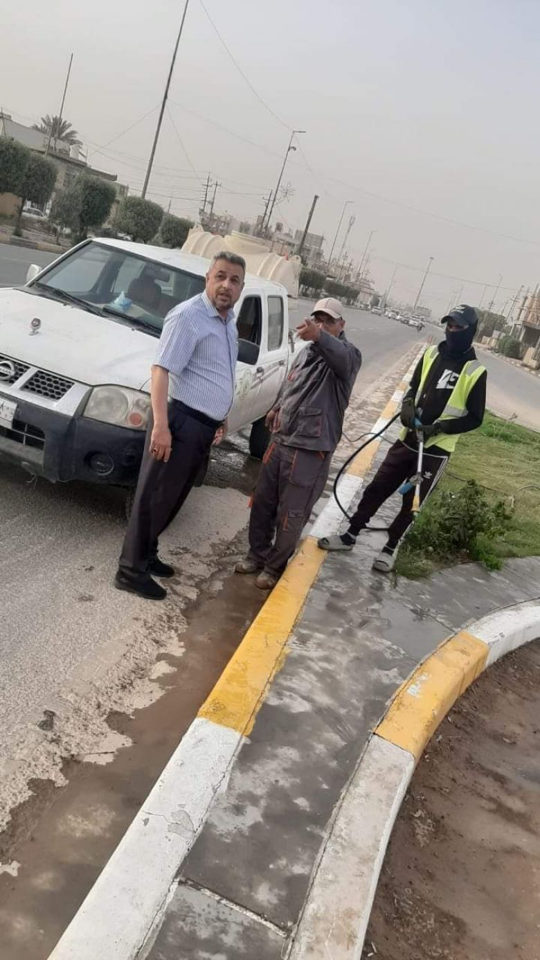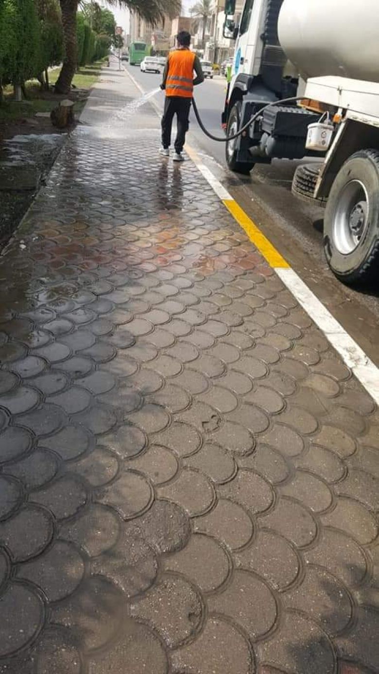 واوضح، ان "المدينة تعرضت لعواصف ترابية كثيفة مما توجب على كوادرنا غسل الشوارع ورش الاشجار بالمياه من اجل اظهارها بالمظهر اللائق".