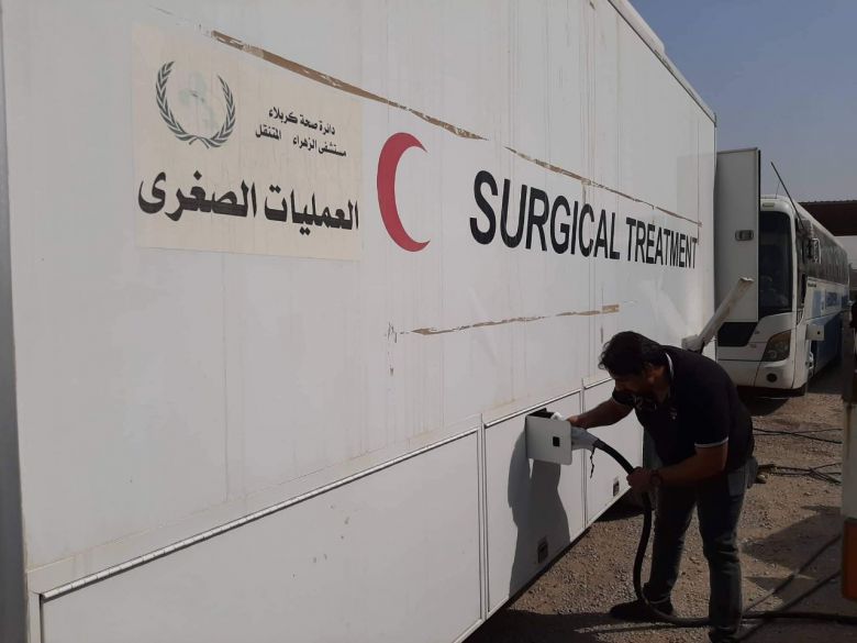 وقال مُدير قسم العمليات والخدمات الطبية الطارئة ، الدكتور الصيدلاني جودت عبد كاظم في تصريح لموقع كربلاء الاخباري، إنه" وفقاً لتوجيهات السيد المدير العام الدكتور صباح الموسوي الرامية لتقديم أفضل الخدمات للزائرين حيث قمنا بتسيّير مُستشفى الزهراء (عليها السلام) المُتنقل التي يضم عجلتي الإفاقة وصيدلية وصالة العمليات وعجلة إسعاف فوري وجعله مُرابطاً قرب حسينية أم البنين (عليها السلام) ضمن محور ( كربلاء _ النجف) ، وهو أحد الطرق الرئيسة التي يسلكها الزائرون الوافدون إلى المدينة لتقديم الخدمات الطبية لهم ".