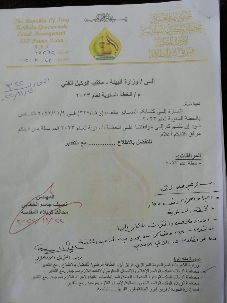 وحصل (موقع كربلاء الإخباري) على نسخة من الوثيقة الرسمية الخاصة بالمصادقة على الخطة والتي شملت إقامة ندوات وورش تثقيفية وتوعوية؛ لغرض نشر الثقافة البيئية.