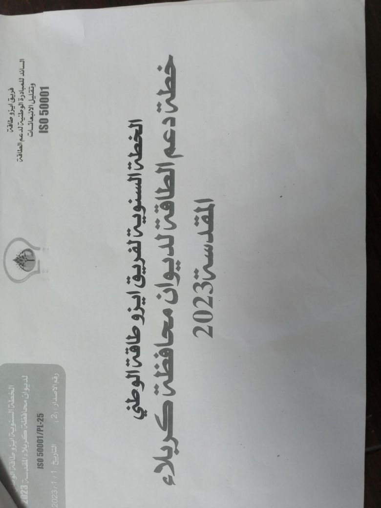 وفي ذات السياق تضمنت الخطة أيضا إقامة مؤتمر للقيادات العليا في ديوان المحافظة للتوعية والتعريف بموضوع ايزو الطاقة وأهميته في الحفاظ على ديمومة الطاقة وتقليل الانبعاثات الناجمة عن استخدامها باستخدام وسائل العزل الحراري في الابنية الحكومية وذلك بشكل تدريجي بالاعتماد على مايتم توفيره من تخصيصات مالية.