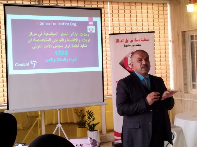 وذكر بيان للشرطة المجتمعية، تلقاه (موقع كربلاء الإخباري) أن "مشاركتهم هذه تأتي بدعوة من رئیسة تنفيذ القرار الأممي (1325) ومنظمة نساء من أجل العدالة في محافظة كربلاء المقدسة المستشارة القانونية زينب أحمد حسون".