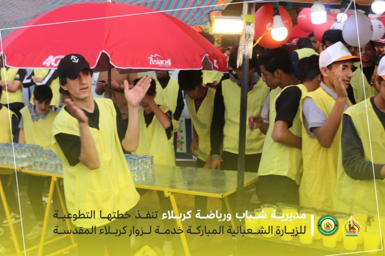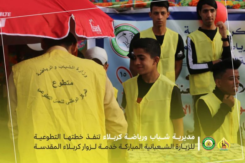 نظمت مديرية شباب ورياضة كربلاء المقدسة - شعبة العمل التطوعي حملة تطوعية في زيارة ليلة النصف من شعبان مولد الامام الحجة عجل الله فرجه الشريف وشملت على نصب موكب لسرايا خدمة الحسين الشبابي بمشاركة 100 شاب متطوع.