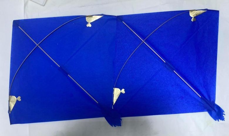 ويختتم" يتم استخدام الغراء على الجهة الداخلية من الزيادة المُضافة على الإطار، ثم تُثنى تلك الزيادة إلى المنطقة الداخلية من الطائرة الورقية "، موضحاً "آلية تثبيت الجهة الداخلية باستخدام الشريط اللاصق لضمان بقاء الحواف ثابتة".