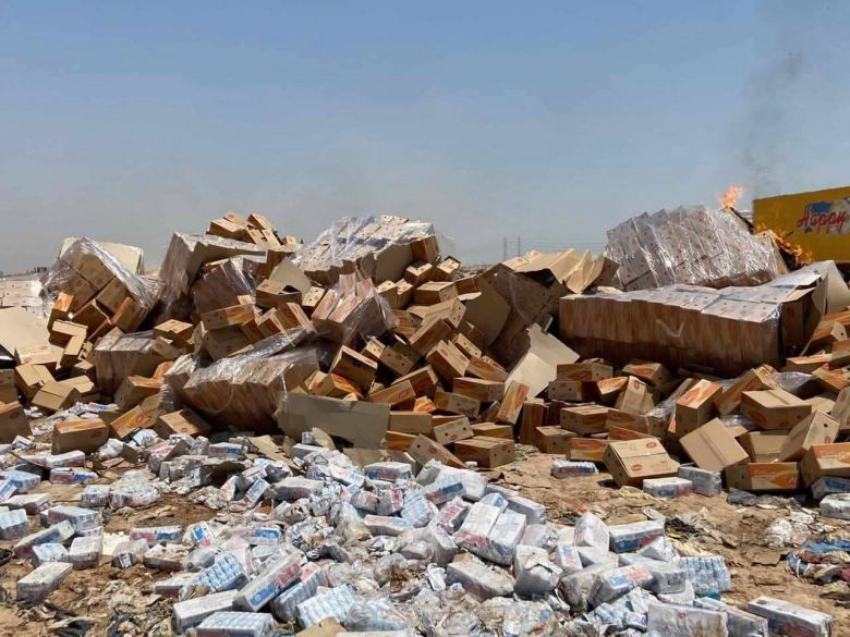 وتابع العواد إلى، إن "الكمية المخزونة قد جرى نقلها الى مواقع الإتلاف بواسطة شاحنات المعمل ، وإتلافها بالتعاون مع دائرة البلدية".