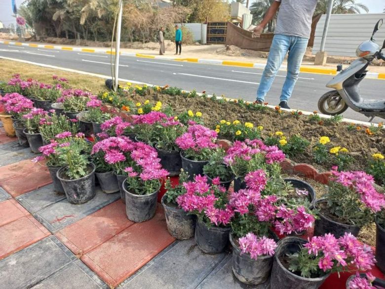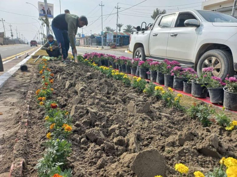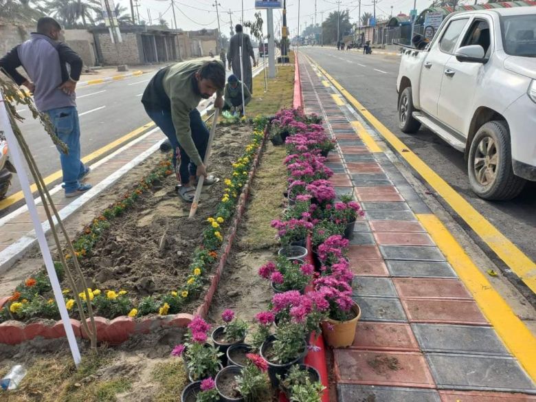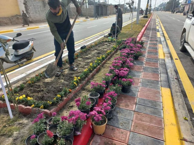 بالصور.. بلدية الجدول الغربي تباشر بزراعة الاوراد الموسمية