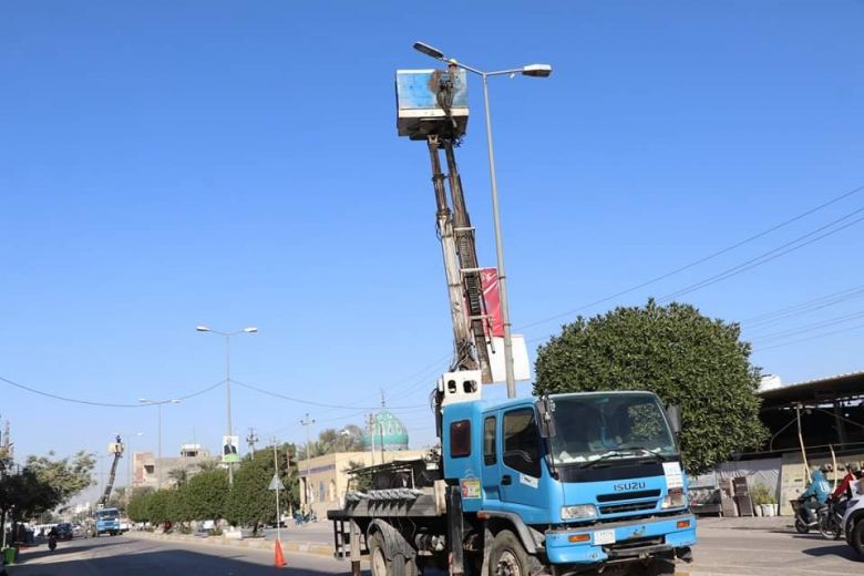 باشرت الملاكات الهندسية والفنية في فرع توزيع كهرباء كربلاء شعبة الانارة، اليوم الخميس، أعمال انارة مداخل ومخارج المحافظة كربلاء المقدسة استعدادا للزيارة الشعبانية.