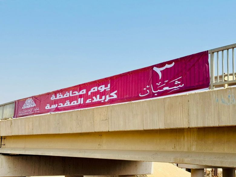 بالصور.. لوحات الثالث من شعبان تزين مداخل كربلاء احتفاء بيوم المحافظة