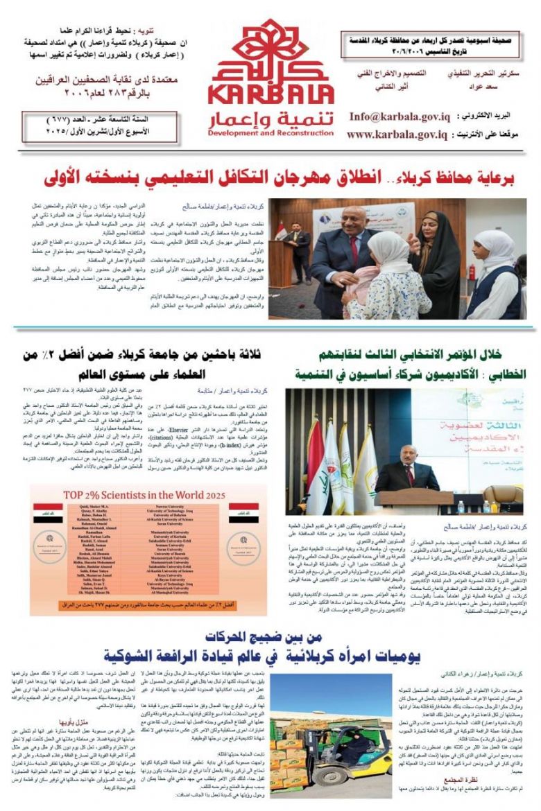 تصفح صحيفة كربلاء تنمية واعمار ذي العدد675