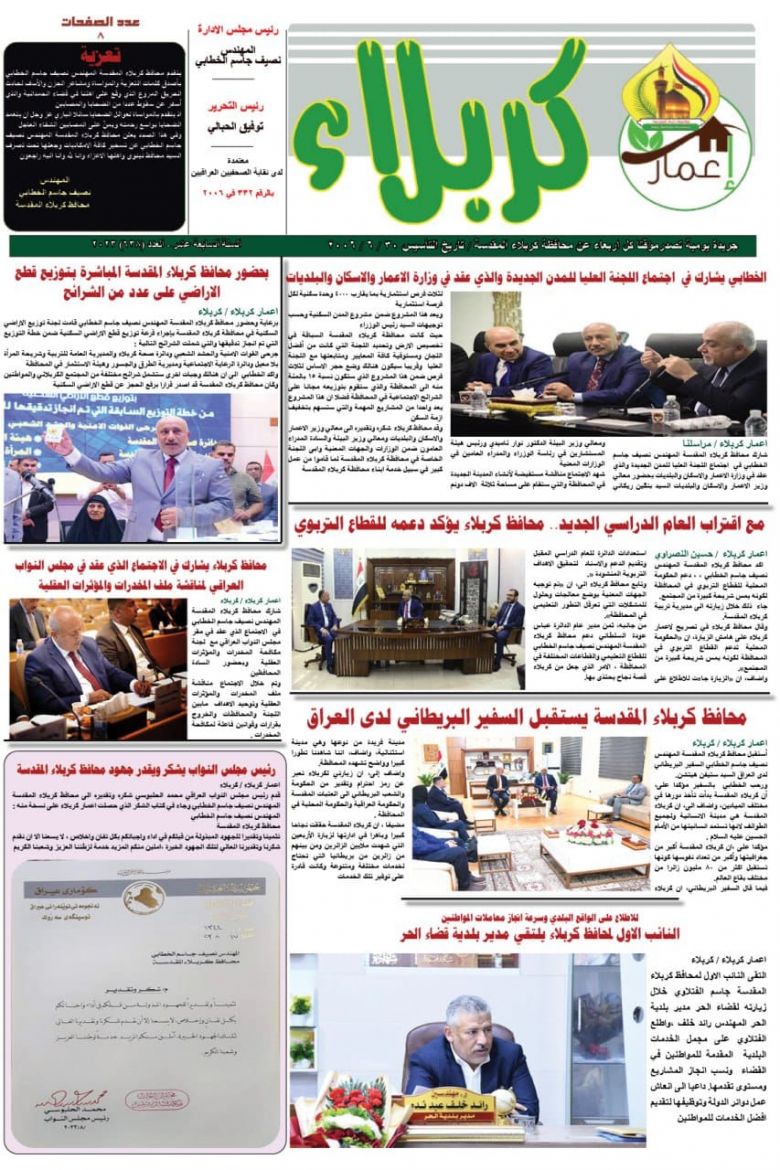 تصفح صحيفة كربلاء تنمية واعمار ذي العدد681