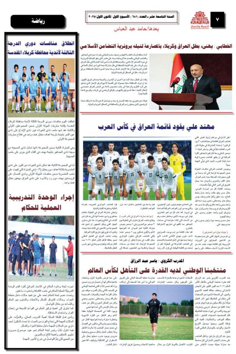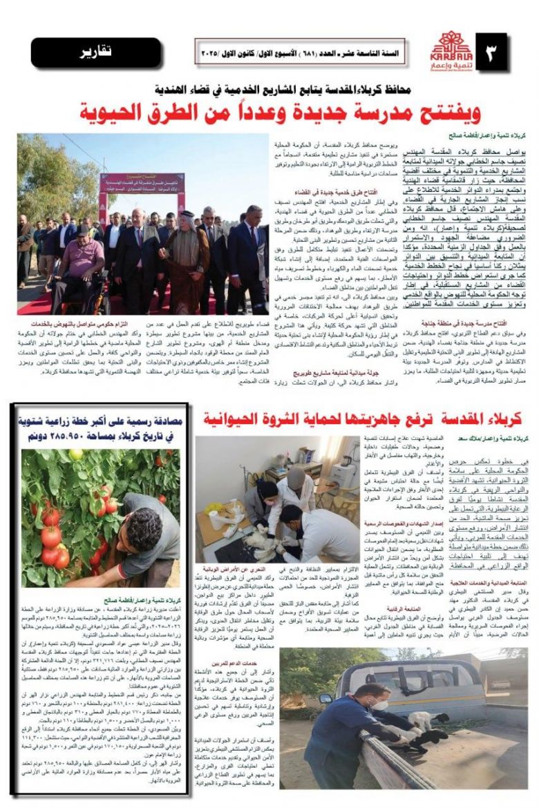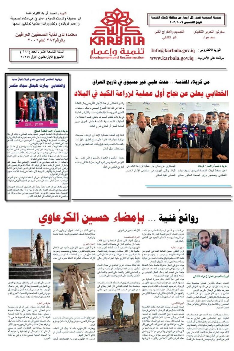 تصفح صحيفة كربلاء تنمية واعمار ذي العدد681