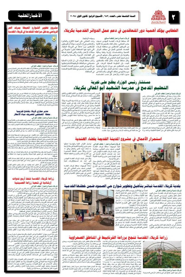 تصفح صحيفة كربلاء تنمية واعمار ذي العدد 679