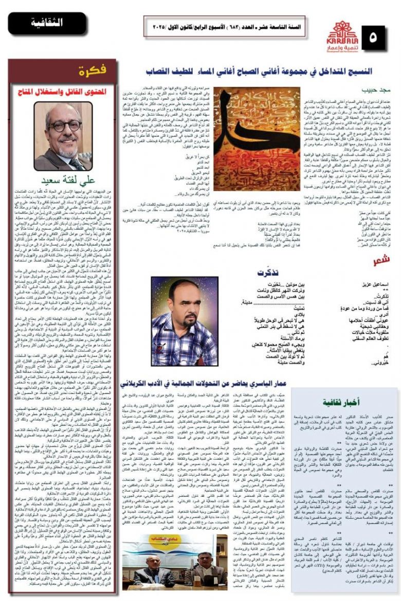 تصفح صحيفة كربلاء تنمية واعمار ذي العدد681