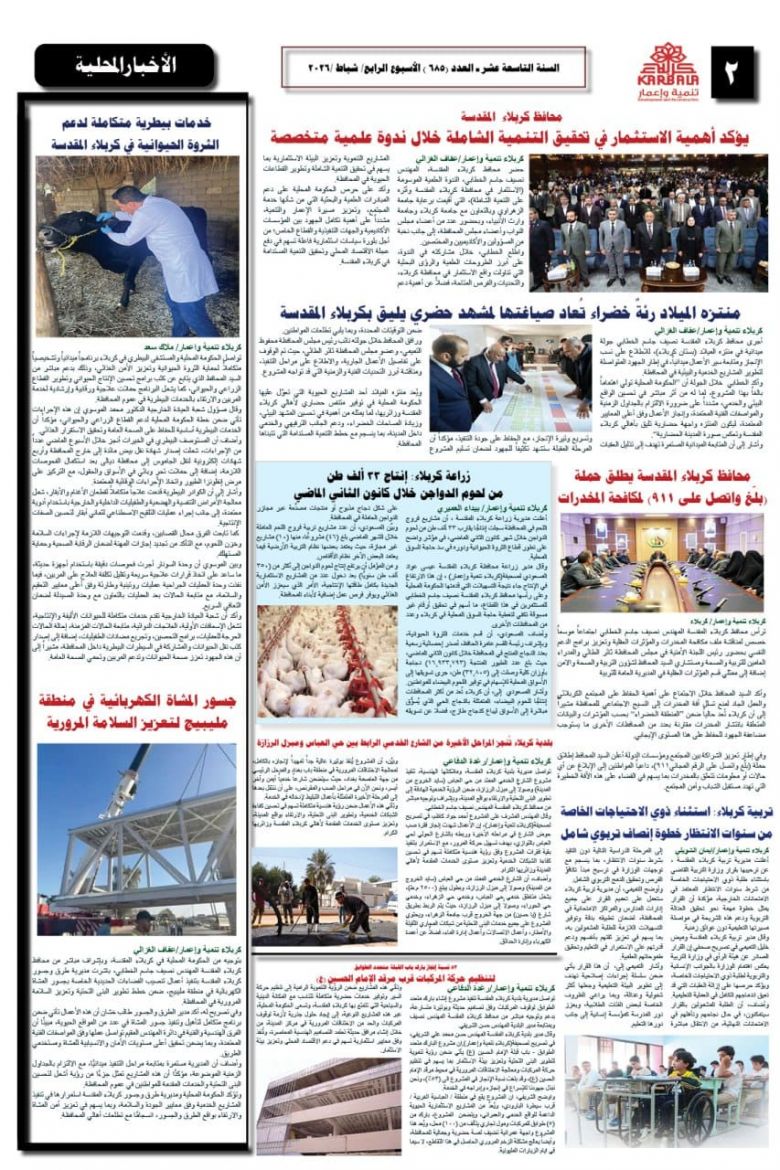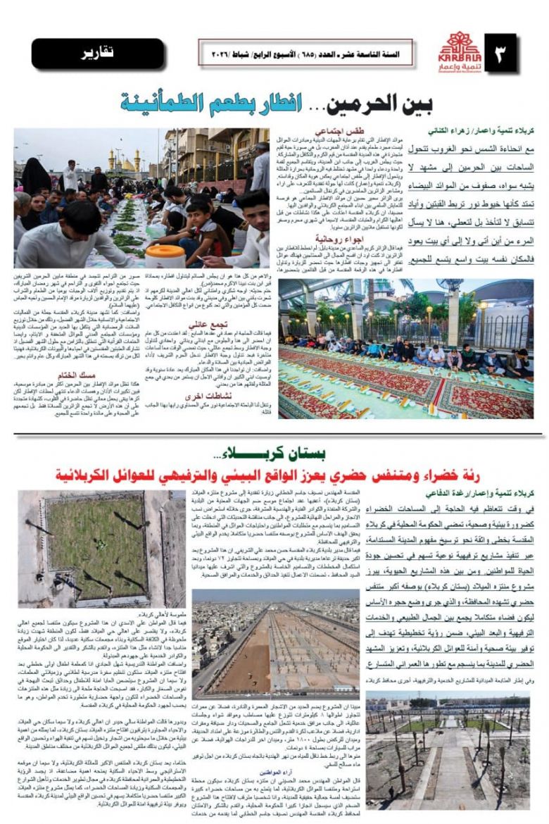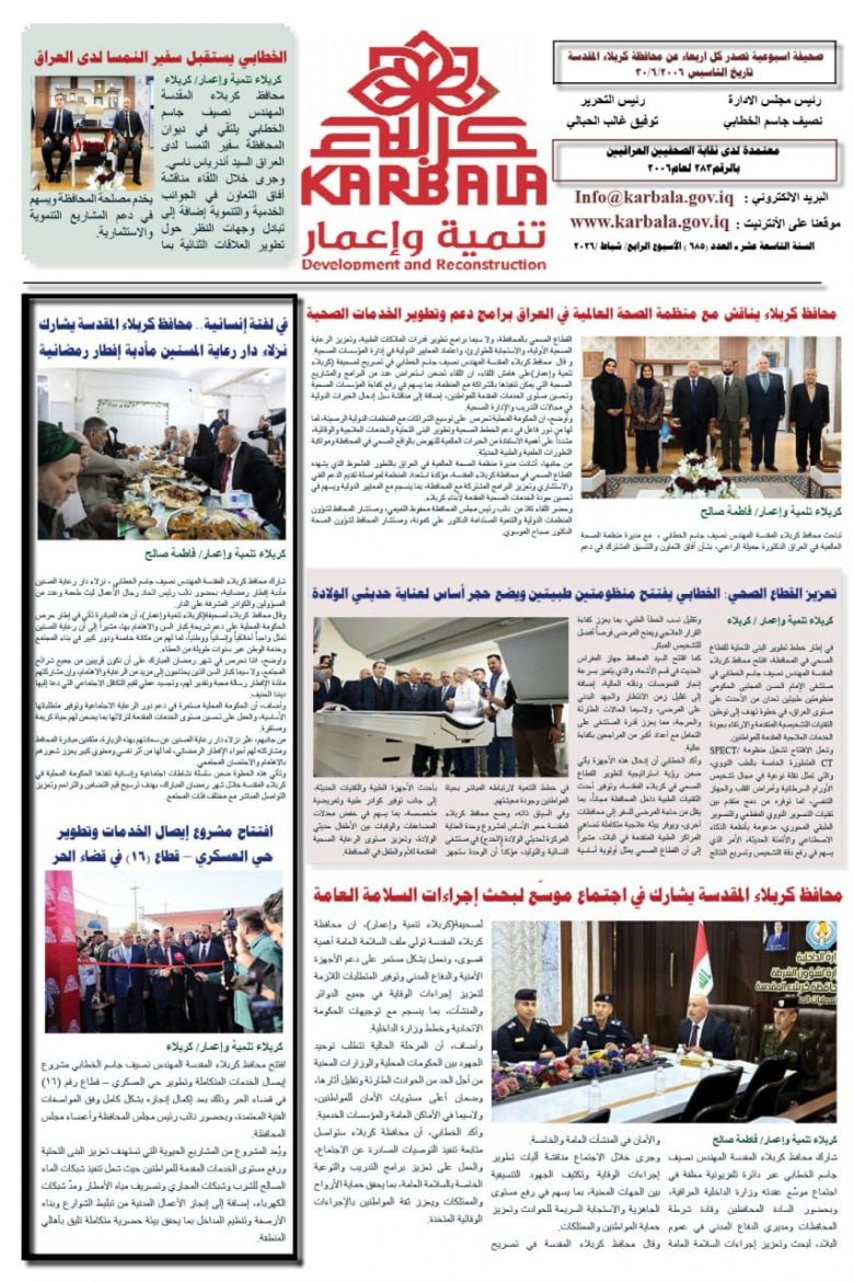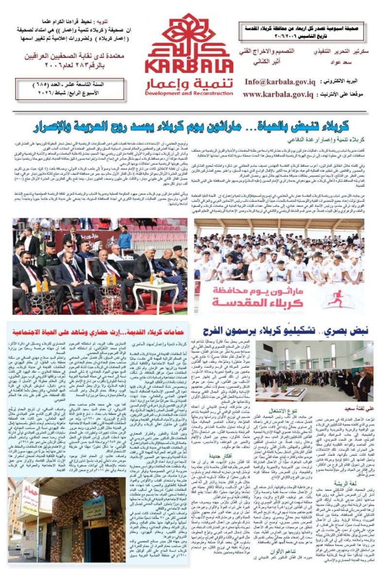 تصفح صحيفة كربلاء تنمية واعمار ذي العدد الكبير ٦٨٥